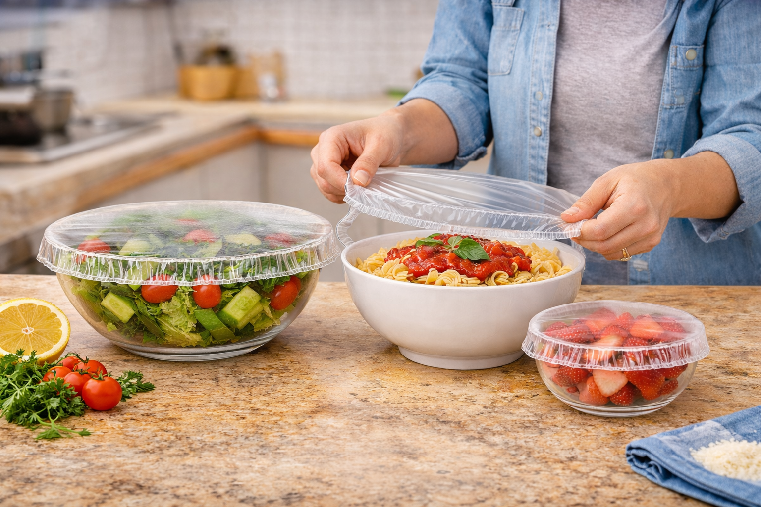 Stop fighting tangled plastic rolls. These elastic covers snap onto any bowl instantly, ending kitchen frustration and protecting your peace of mind while you prep your family's favorite meals.